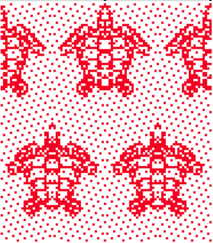 24 shafts also allow for creating images as well. These are drafts I’ve found around the web from weavers who are taking simple images and translating them into fabrics.