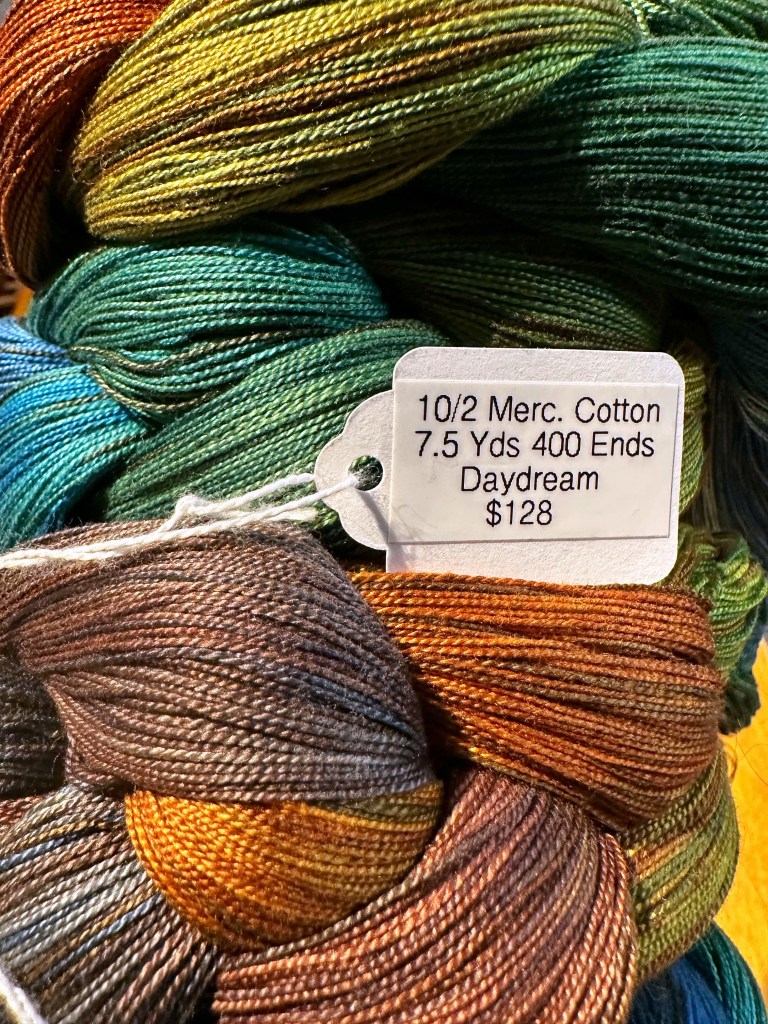 I’m down to only one more towel to finish on this warp. This is when my desire to know what goes on next kicks in. I thought it would be the pink one from my last post, but there’s a handpainted warp I really want to explore that’s really calling to me hard.