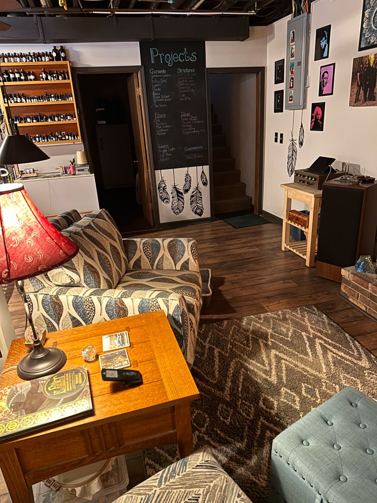 This is where the good stuff happens. Back around 2012, my Michigan born husband and I started kicking around the idea of moving to Colorado. As we started getting closer to the age of retirement, we made the choice to stay here, where we have built family and community. We took a walkout basement that was filled as storage space and transformed it into my dream creative space.