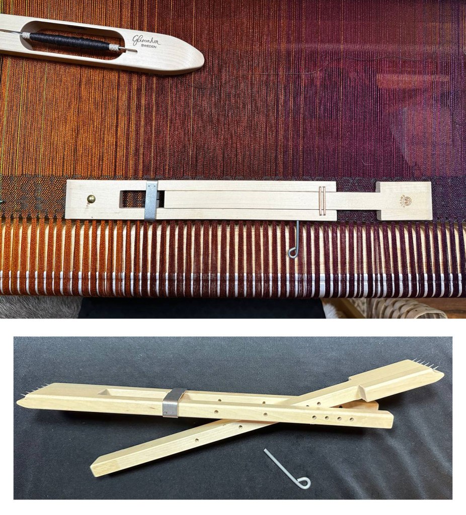 I finally found what I think is going to be an amazing solution for two of my looms. It’s a clip and weight temple that’s really rather ingenious.